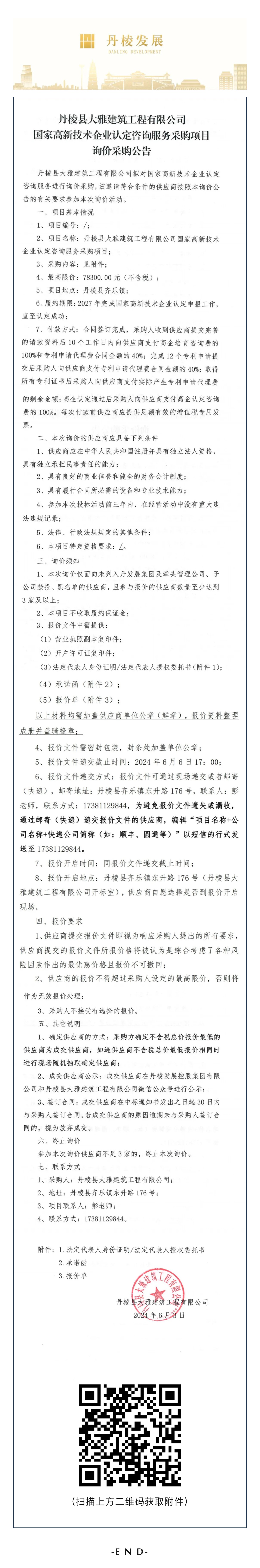 丹棱縣大雅建筑工程有限公司國家高新技術(shù)企業(yè)認定咨詢(xún)服務(wù)采購項目詢(xún)價(jià)采購公告