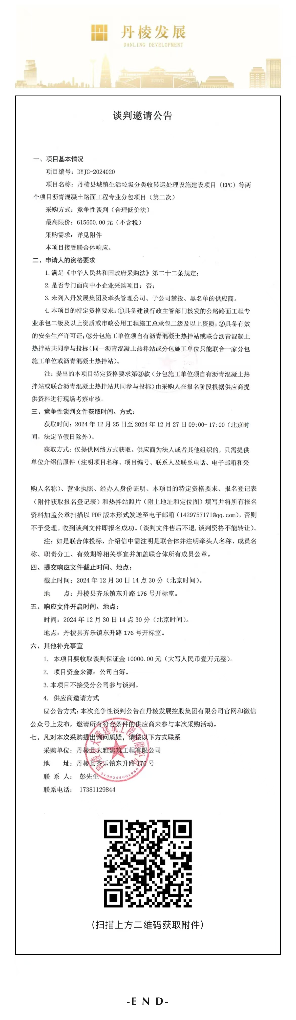 丹棱縣城鎮生活垃圾分類(lèi)收轉運處理設施建設項目(EPC)等兩個(gè)項目瀝青混凝土路面工程專(zhuān)業(yè)分包項目(第二次)談判邀請公告