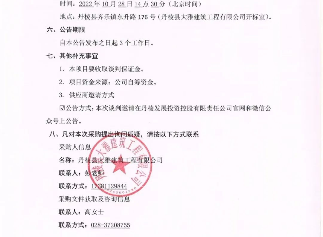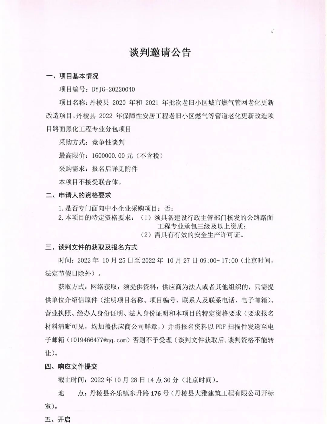 丹棱縣 2020 年、 2021 年、 2022 年保障性安居工程老舊小區燃氣等管道老化更新改造項目路面黑化工程專(zhuān)業(yè)分包項目談判邀請公告