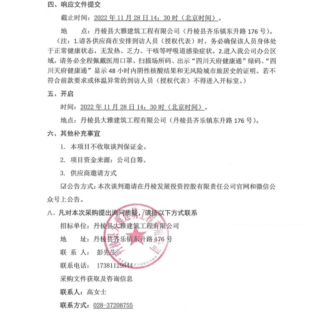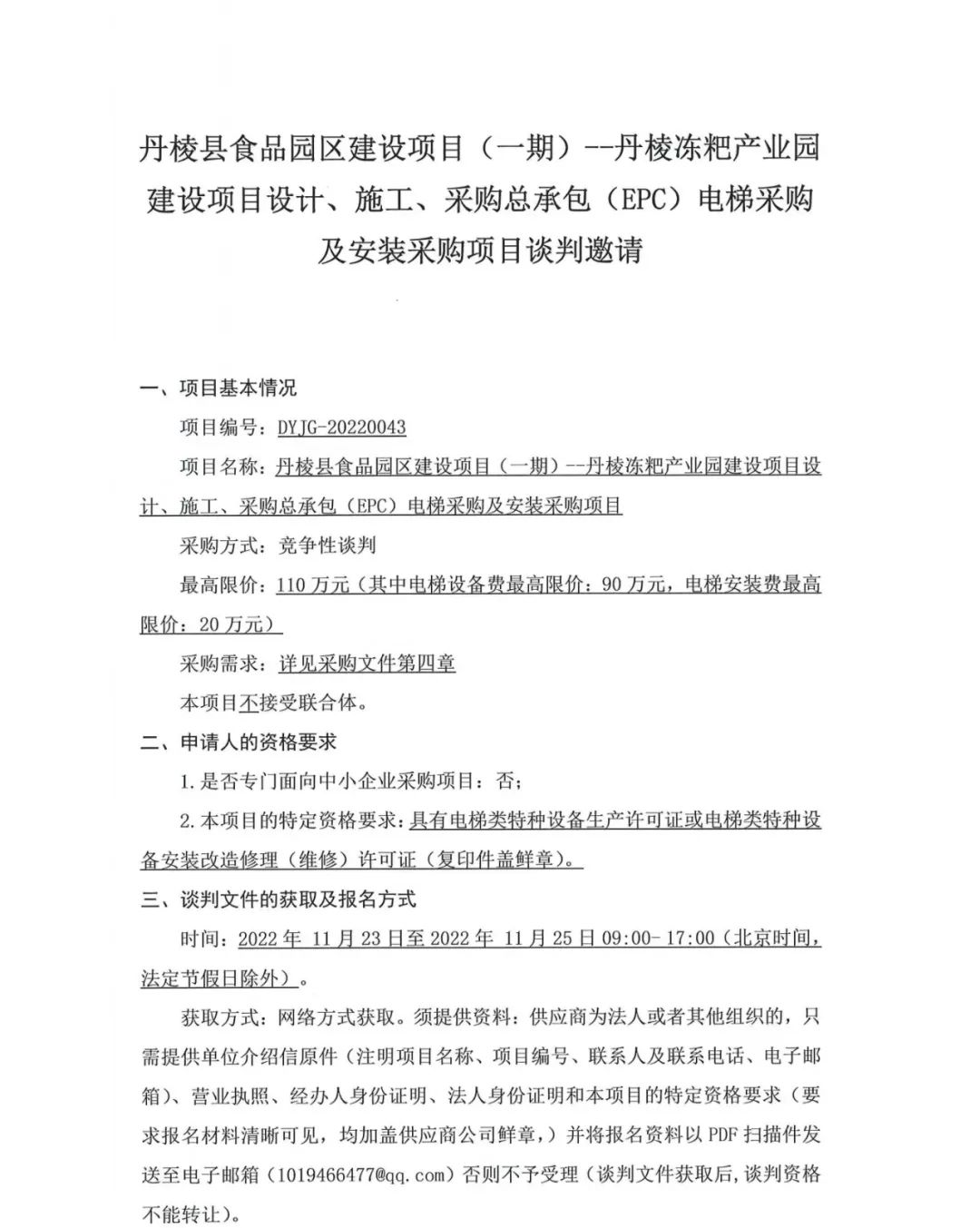 丹棱縣食品園區建設項目 (一期)--丹棱凍粑產(chǎn)業(yè)園建設項目設計、施工、采購總承包 (EPC) 電梯采購及安裝采購項目談判邀請公告