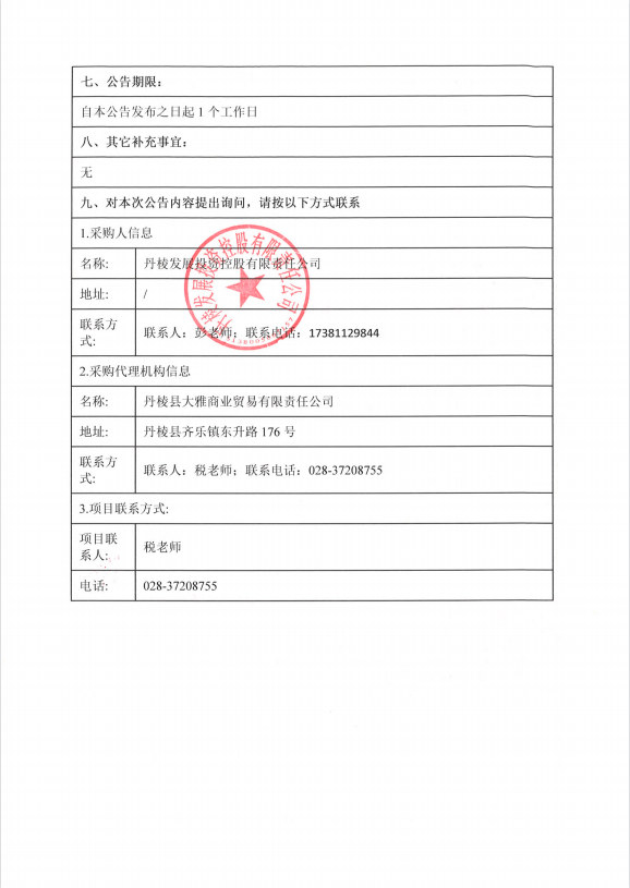 【丹發(fā)展公司】丹棱發(fā)展投資控股有限責任公司供應商目錄庫入庫代理機構采購項目競爭性磋商成交公告
