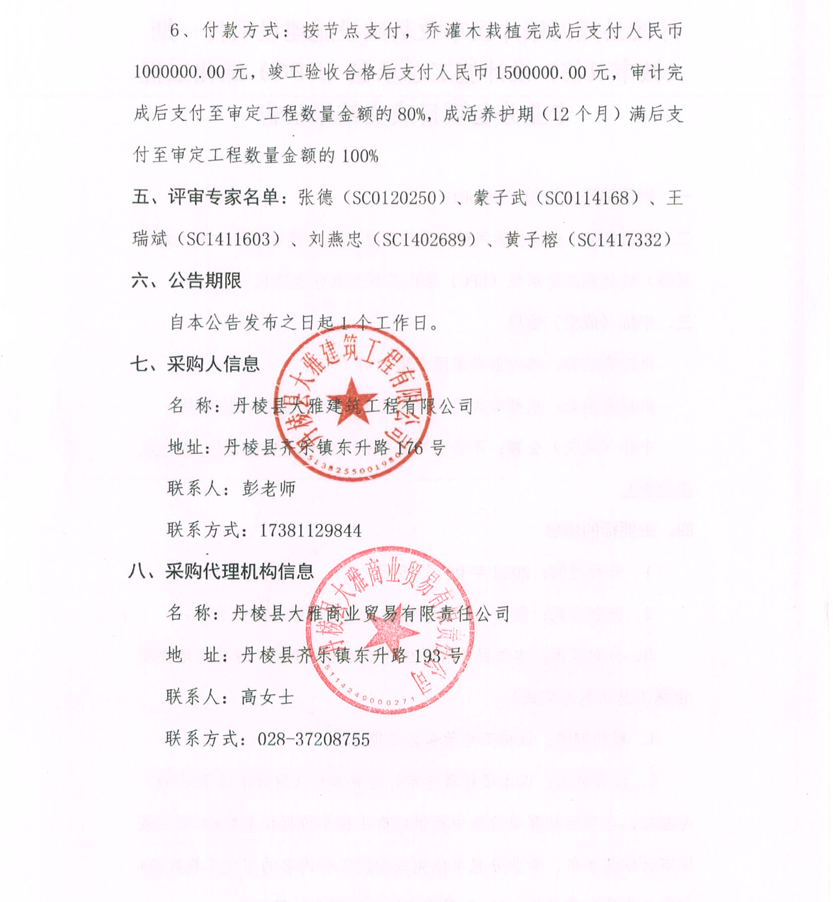 丹棱縣熊河碥片區市政基礎設施建設項目一期(城市雙修)設計施工總承包(EPC)綠化工程 專(zhuān)業(yè)分包項目成交結果公告