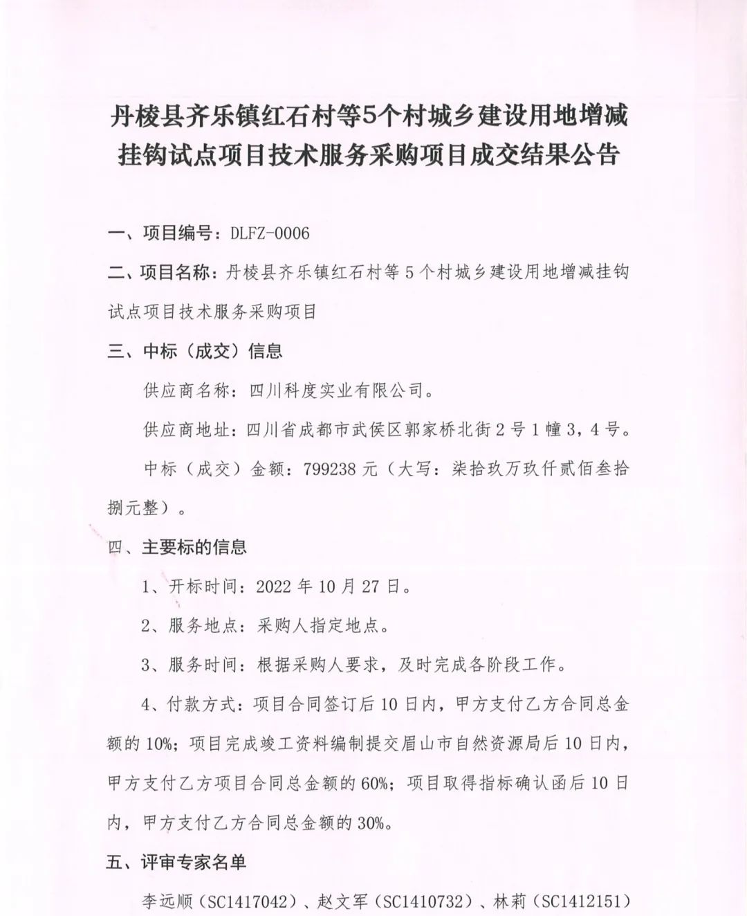 丹棱縣齊樂(lè )鎮紅石村等5個(gè)村城鄉建設用地增減掛鉤試點(diǎn)項目技術(shù)服務(wù)采購項目成交結果公告