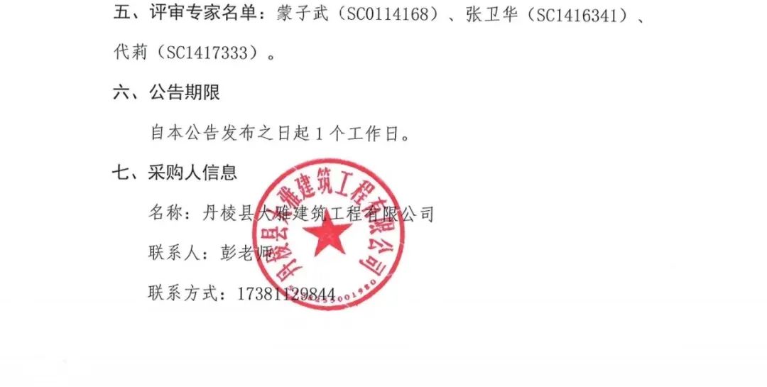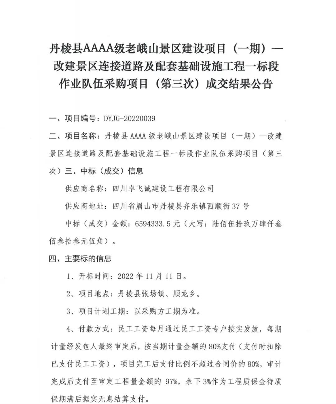 丹棱縣AAAA級老峨山景區建設項目 (一期)-改建景區連接道路及配套基礎設施工程一標段作業(yè)隊伍采購項目 (第三次) 成交結果公告