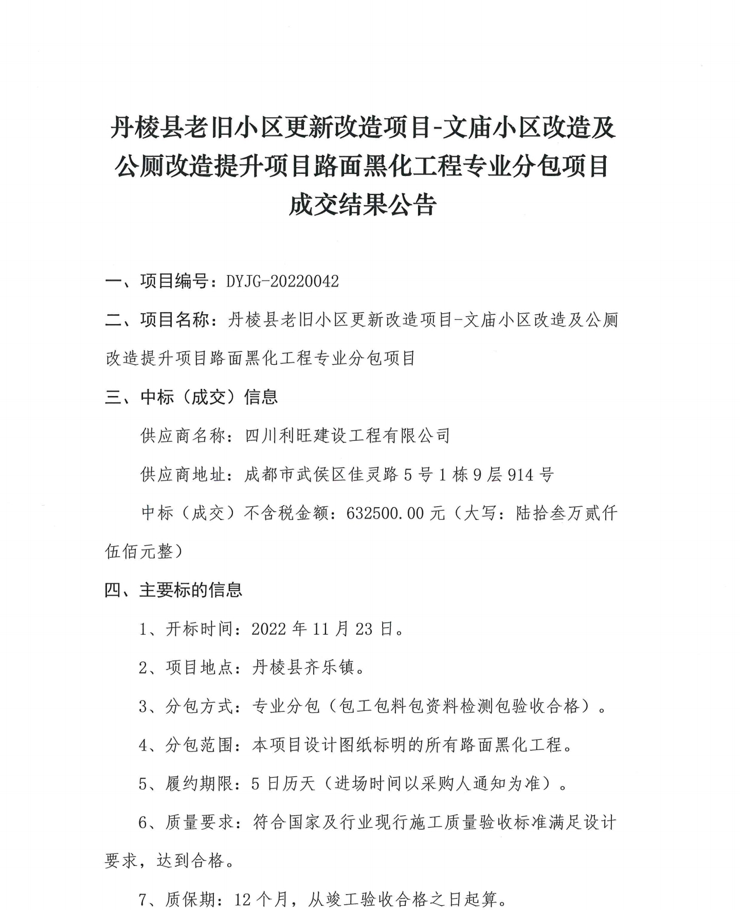丹棱縣老舊小區更新改造項目-文廟小區改造及公廁改造提升項目路面黑化工程專(zhuān)業(yè)分包項目成交結果公告