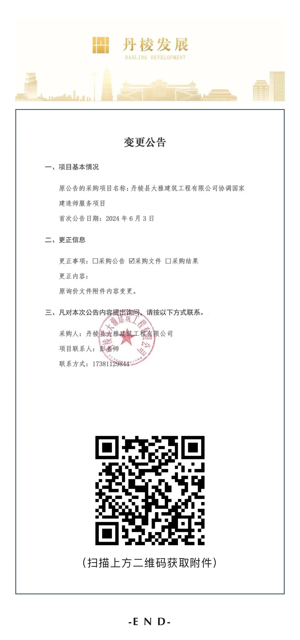 丹棱縣大雅建筑工程有限公司協(xié)調國家建造師服務(wù)項目變更公告