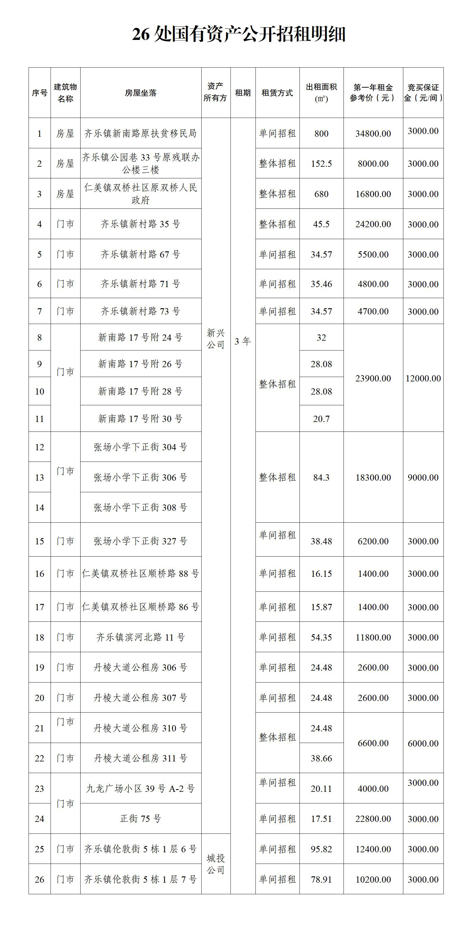 丹棱縣26處國有資產(chǎn)3年租賃權