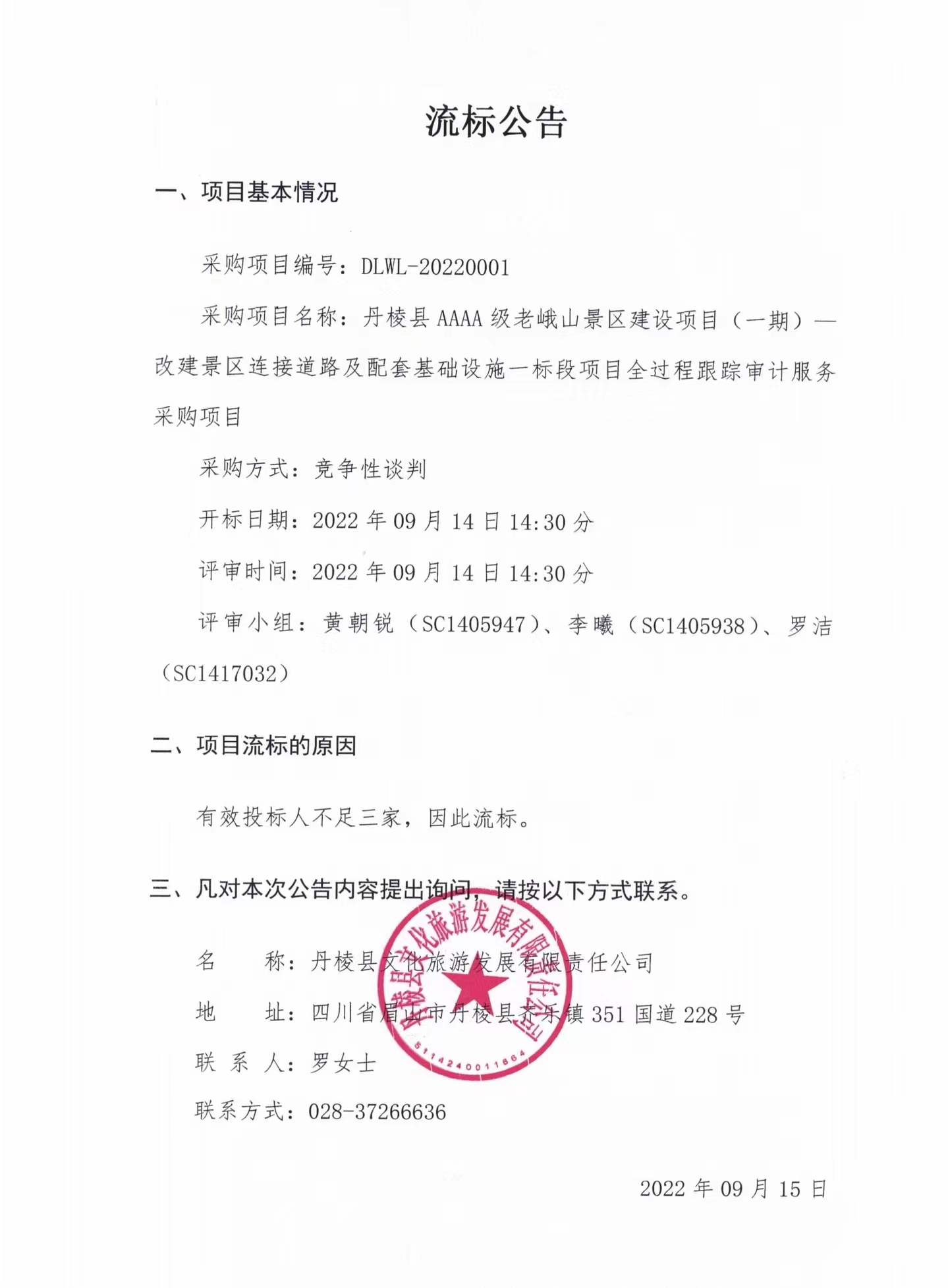 丹棱縣AAAA級老峨山景區建設項目(一期)--改建景區連接道路及配套基礎設施一標段項目全過(guò)程跟蹤審計服務(wù)采購項目流標公告