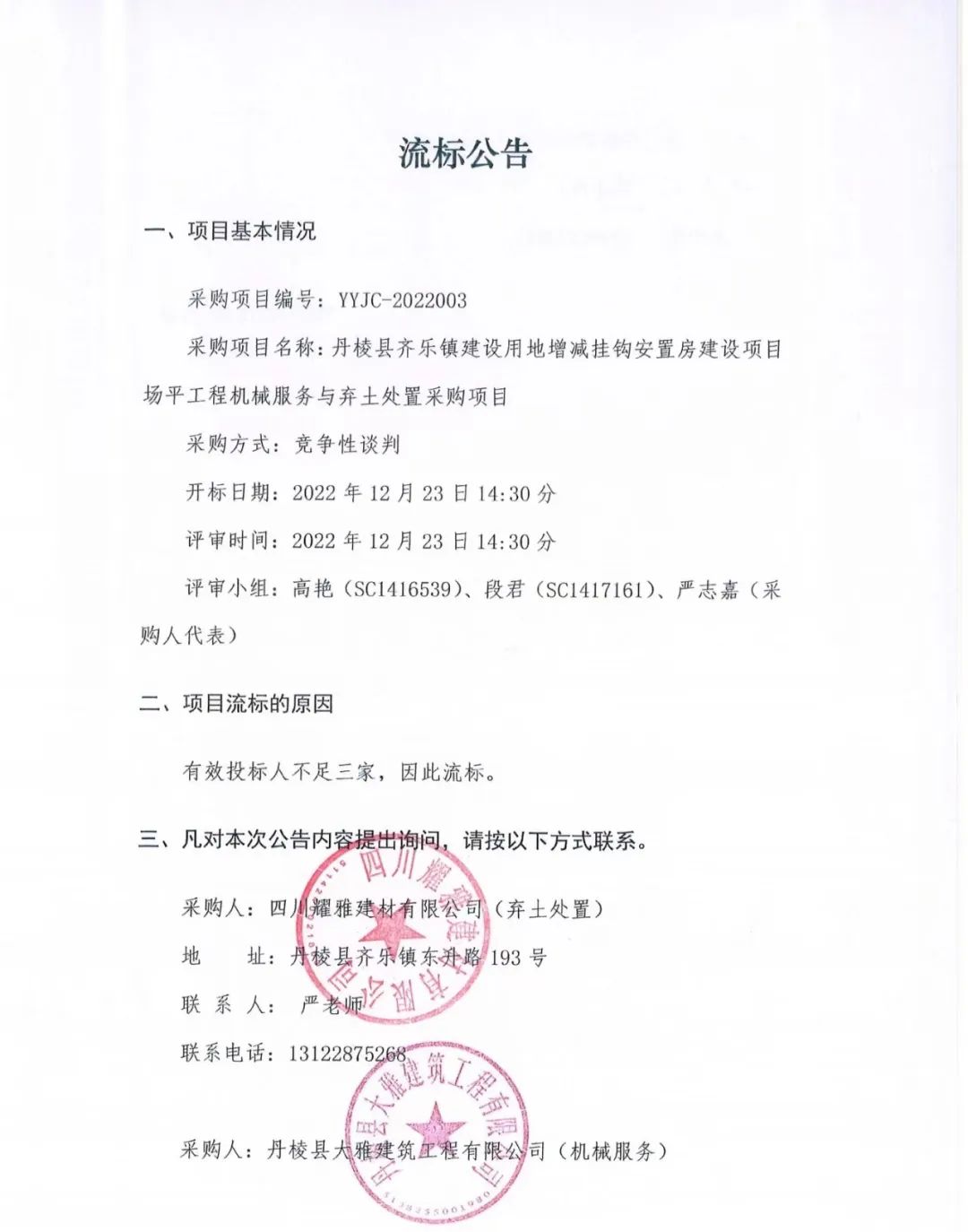 丹棱縣齊樂(lè )鎮建設用地增減掛鉤安置房建設項目場(chǎng)平工程機械服務(wù)與棄土處置采購項目流標公告