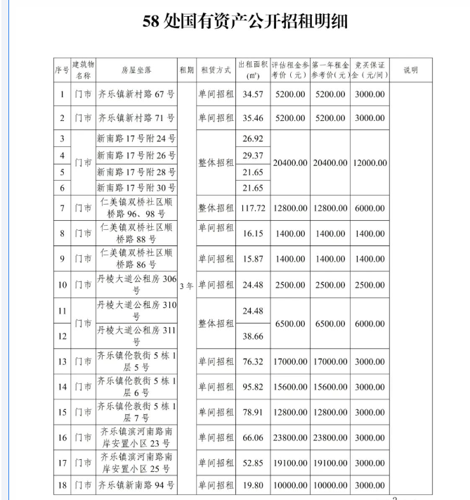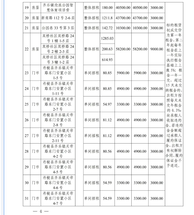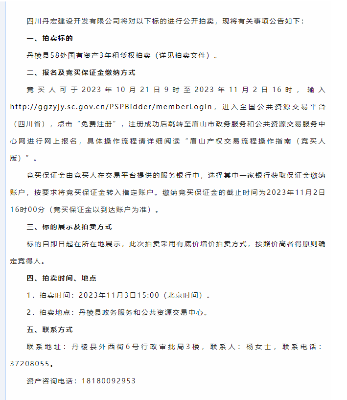 丹棱縣58處國有資產(chǎn)3年租賃權拍賣(mài)公告