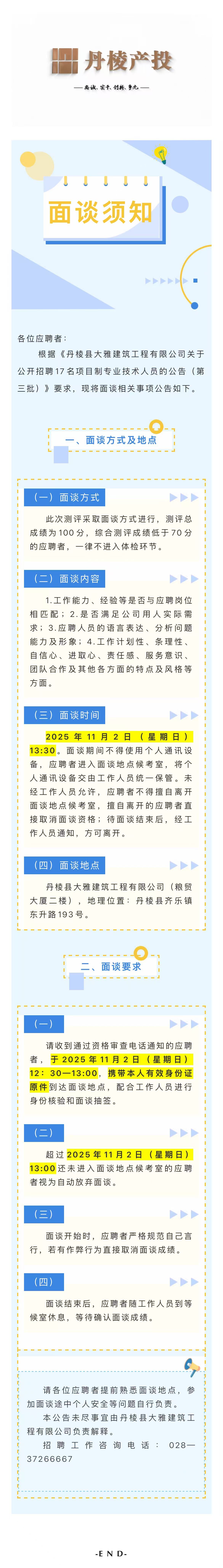 丹棱縣大雅建筑工程有限公司關(guān)于公開(kāi)招聘17名項目制專(zhuān)業(yè)技術(shù)人員的面談須知(第三批)