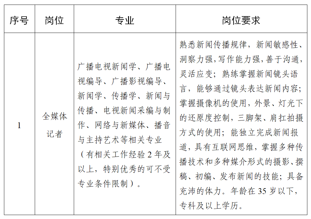 因業(yè)務(wù)發(fā)展需要,丹棱縣融媒體中心委托丹棱縣大雅家園勞務(wù)服務(wù)有限公司面向社會(huì )公開(kāi)招聘全媒體記者1名,具體內容如下: