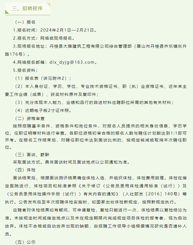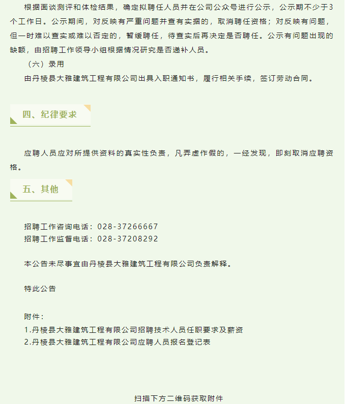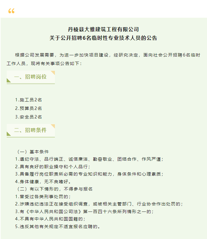 丹棱縣大雅建筑工程有限公司關(guān)于公開(kāi)招聘6名臨時(shí)性專(zhuān)業(yè)技術(shù)人員的公告