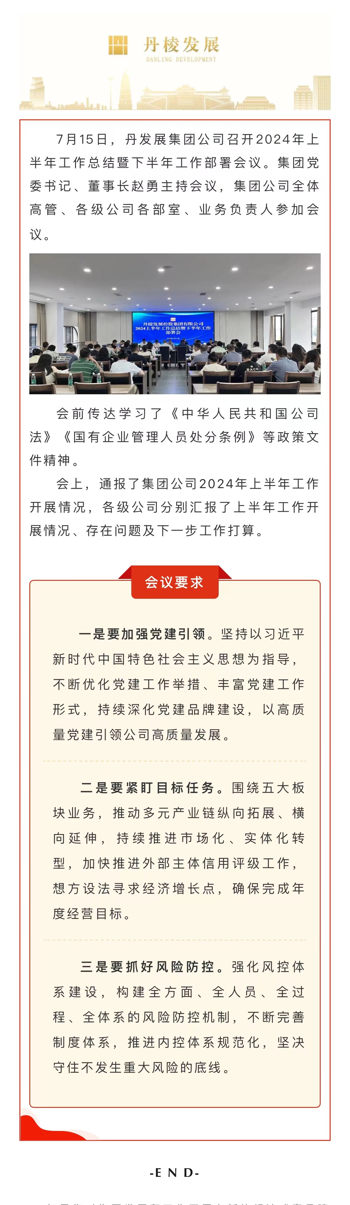 對標對表再提升 砥礪奮進(jìn)下半程丨丹發(fā)展集團公司召開(kāi)2024年上半年工作總結暨下半年工作部署會(huì )