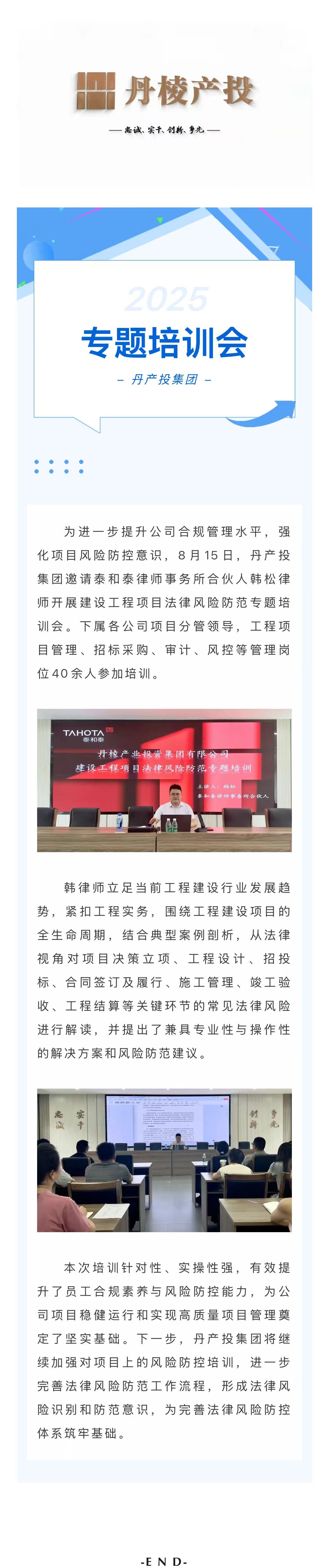 丹產(chǎn)投集團開(kāi)展建設工程項目法律風(fēng)險防范專(zhuān)題培訓會(huì )