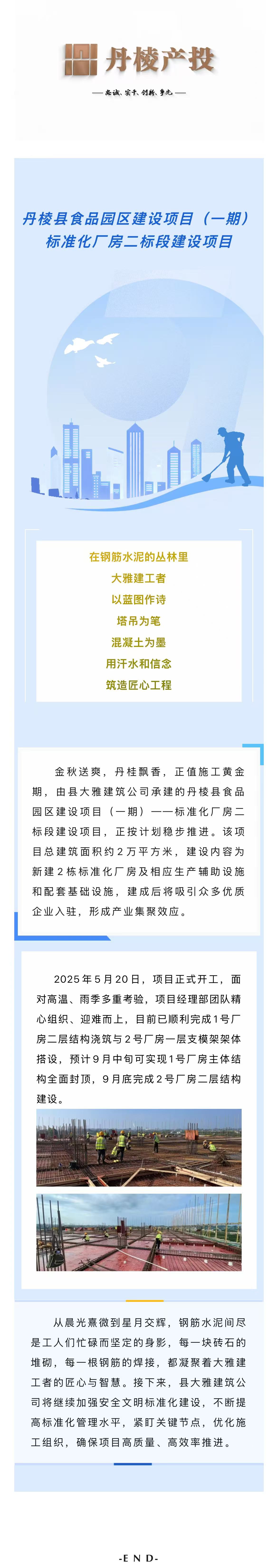 【縣大雅建筑公司】丹棱縣食品園區建設項目(一期)——標準化廠(chǎng)房二標段建設項目穩步推進(jìn)