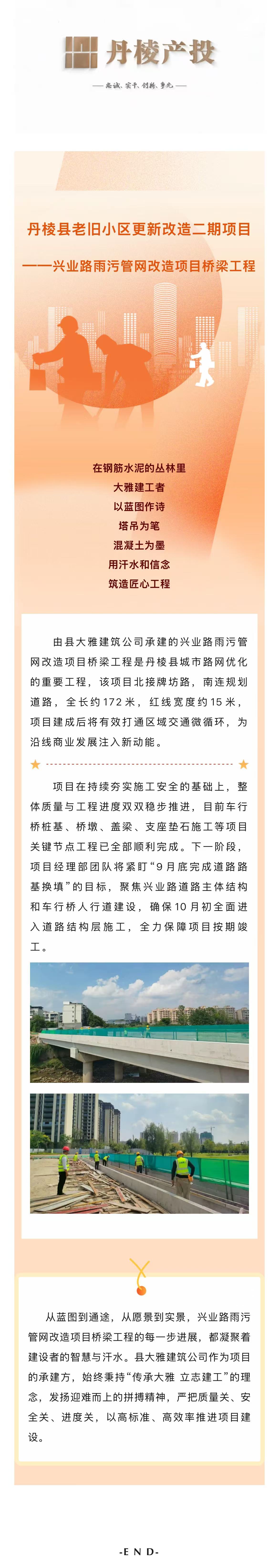 【縣大雅建筑公司】丹棱縣老舊小區更新改造二期項目—興業(yè)路雨污管網(wǎng)改造項目橋梁工程全力推進(jìn)中