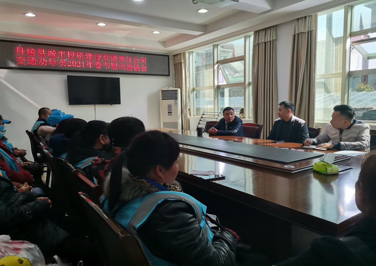 春節將至,歲寒情深。2月5日,丹棱縣城市投資建設有限責任公司組織召開(kāi)了交通勸導員2021年春節慰問(wèn)座談會(huì ),會(huì )議在丹發(fā)展公司董事長(cháng)趙勇同志的主持下召開(kāi)。
