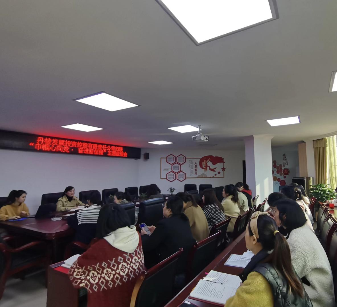為慶祝國際勞動(dòng)婦女節,3月8日上午10點(diǎn),丹發(fā)展公司組織全體女員工開(kāi)展“巾幗心向黨·奮進(jìn)新征程”主題座談會(huì ),會(huì )議由婦聯(lián)主席邱希娟同志主持。