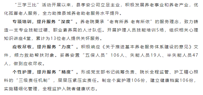 丹發(fā)展集團“三學(xué)三比”活動(dòng)系列成效③——縣孝安公司:聚力養老服務(wù) ,讓老有所依