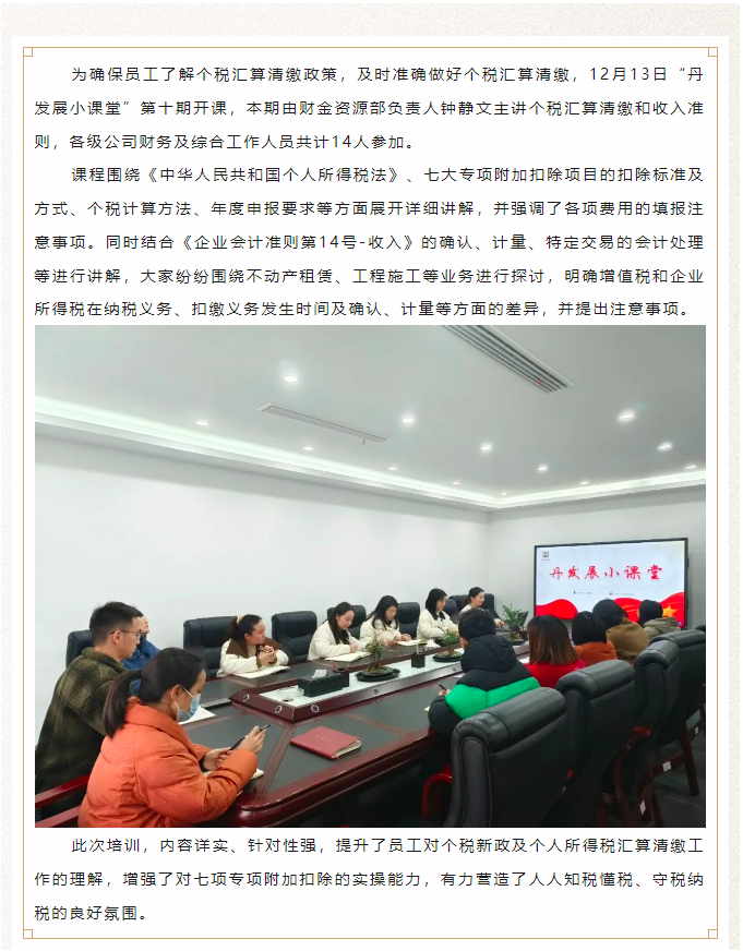 個(gè)稅匯算清繳培訓——“丹發(fā)展小課堂”第十期開(kāi)講啦!