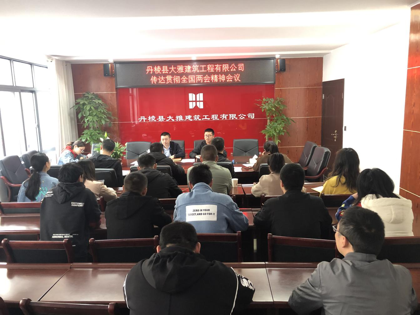 近日,丹棱縣大雅建筑工程有限公司召開(kāi)傳達貫徹全國兩會(huì )精神會(huì )議,公司董事長(cháng)主持會(huì )議,全體黨員和干部職工參加。