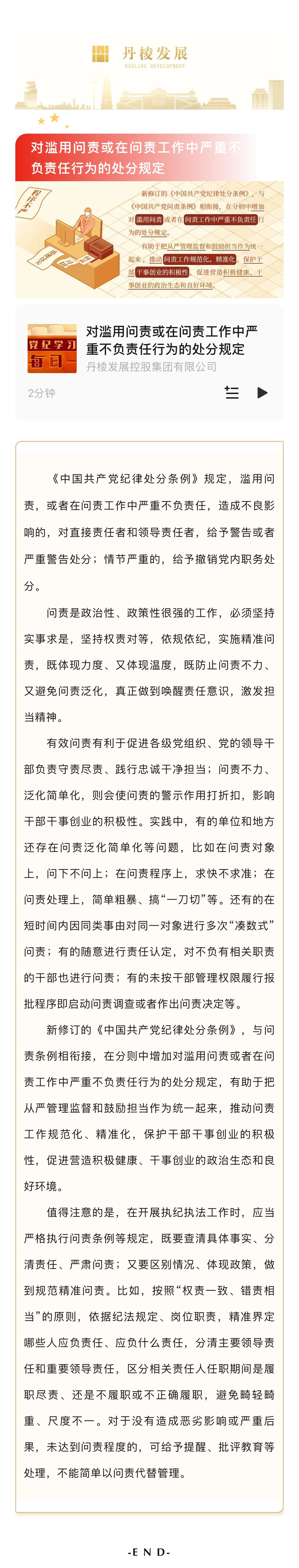【黨紀學(xué)習教育】每日一課丨對濫用問(wèn)責或在問(wèn)責工作中嚴重不負責任行為的處分規定